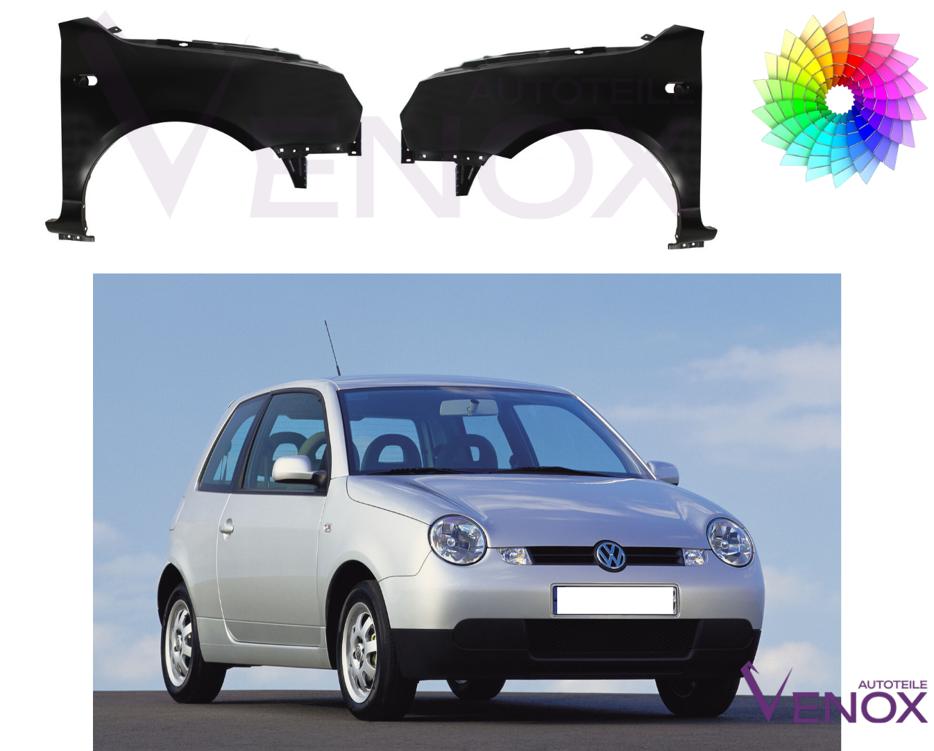 Stænkskærm FRONT RIGHT til VW Lupo 98-05 MALET I WISHED FARVE