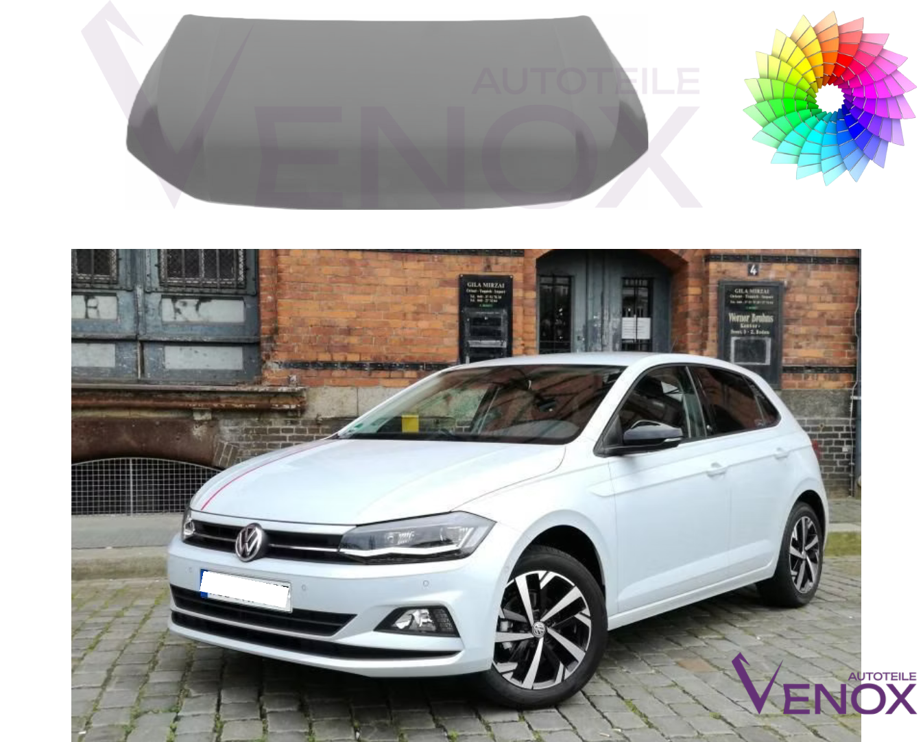 Motorhjelm til Vw Polo fra 2017 – malet i ønsket farve Ny